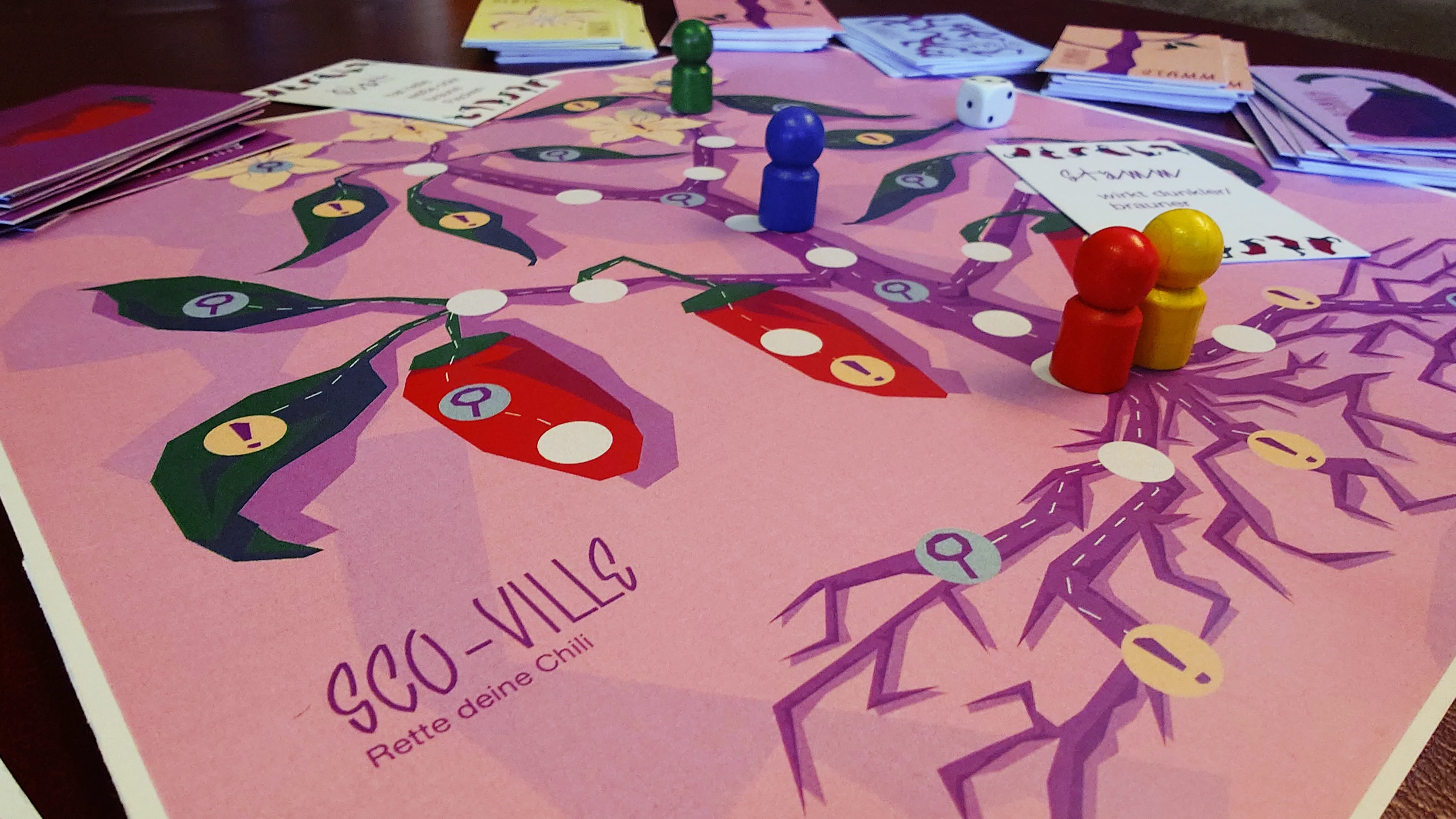 In SCO-VILLE übernehmen die Spielenden die Rolle von Chili-Expertinnen. Jeder kümmert sich um eine eigene Chilipflanze, die von einer unbekannten Krankheit befallen ist. Durch das Sammeln von Hinweisen, Münzen und Hilfsmitteln versuchen die Spielenden, die Krankheit ihrer Pflanze korrekt zu diagnostizieren und rechtzeitig zu behandeln.