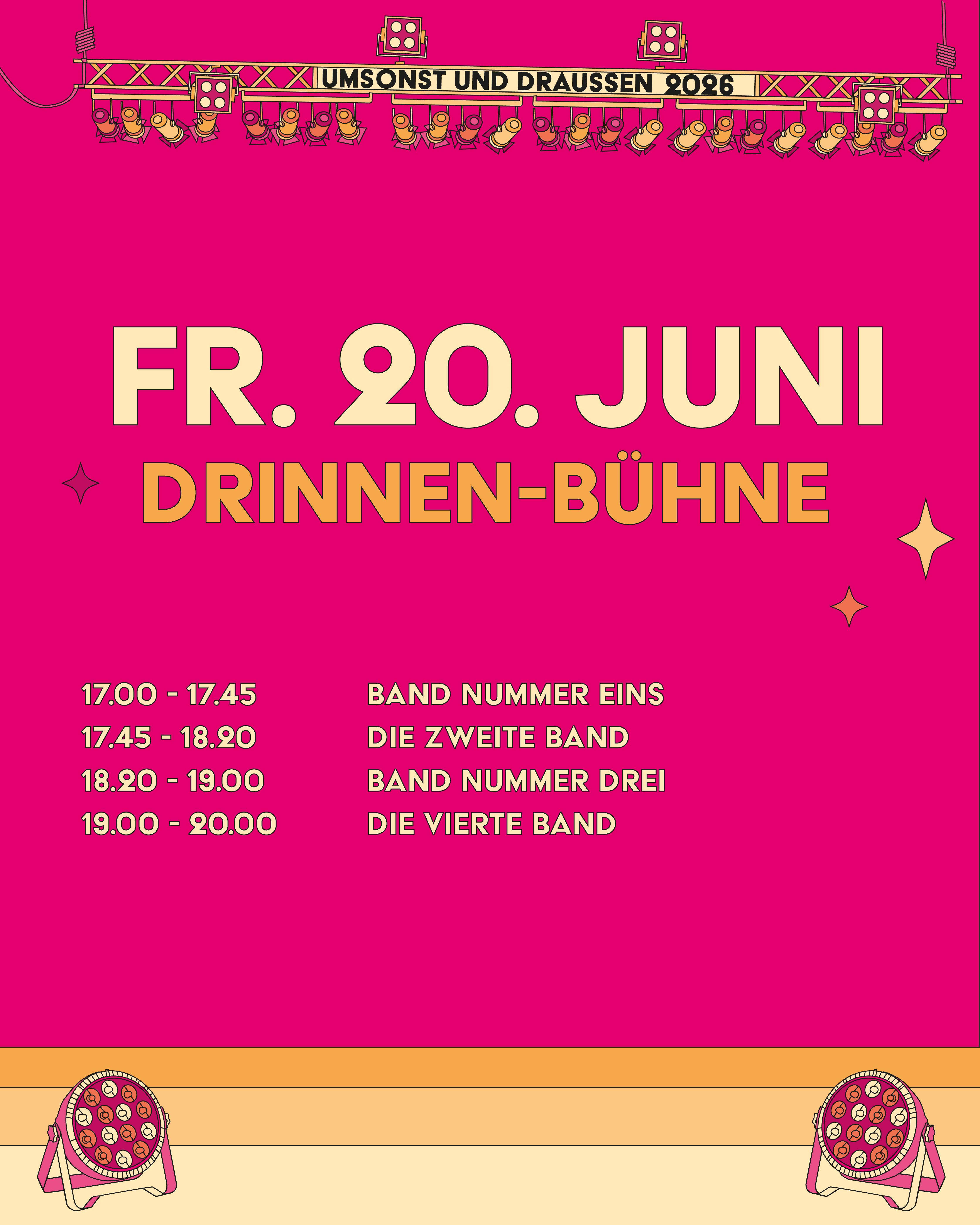 / projekte/ grafikdesign/ Umsonst und Draussen Entwurf 2/ Umsonst und Draussen Entwurf 2 Ein Entwurf für den Plakatwettbewerb des Umsonst und Draussen Festival Plakates 2025.